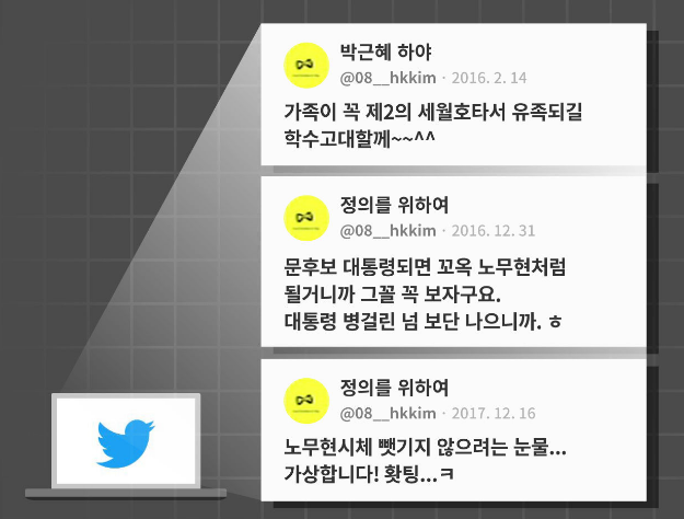 트위터 계정에 등록된 이메일이란 것의 아이디, 비밀번호가 여러 사람에게 공유되었기 때문에 문제가 된 글의 작성자를 특정할 수 없음