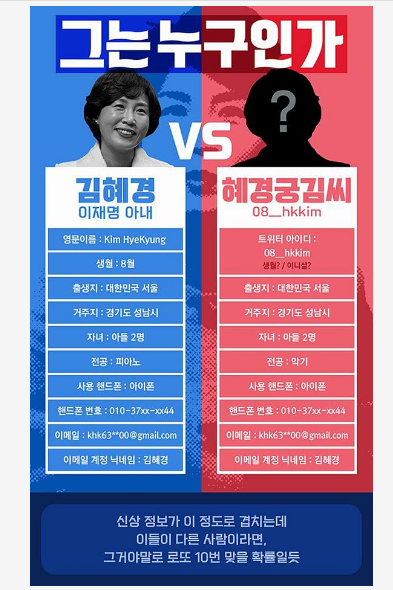 트위터 글의 일부에선 김혜경씨의 신상과 부합하지 않는 글, 정황이 다수 존재함